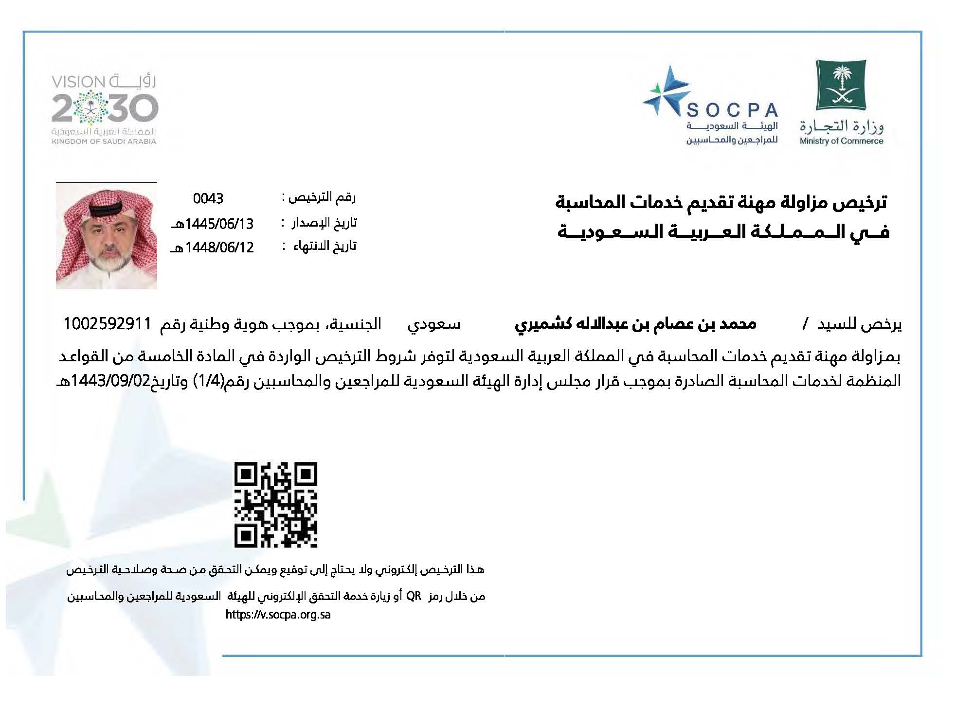 يسعدنا أن نقدم لكم الرخص و المؤهلات الخاصة بالأعمال المحاسبية